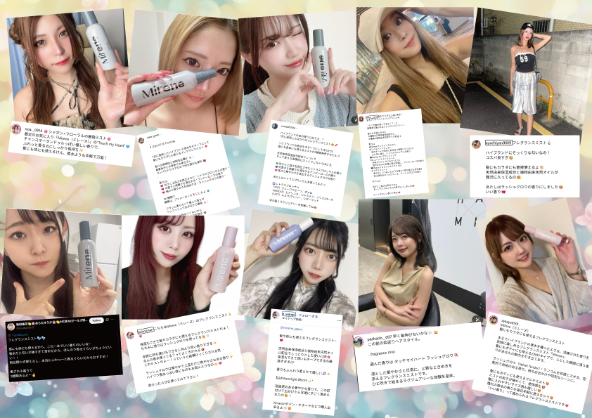 Mirene(ミレーヌ)は、髪にもカラダにも直接お使いいただける、天然由来保湿成分と植物由来天然オイルを贅沢に使用したプレミアム・フレグランスミストです。